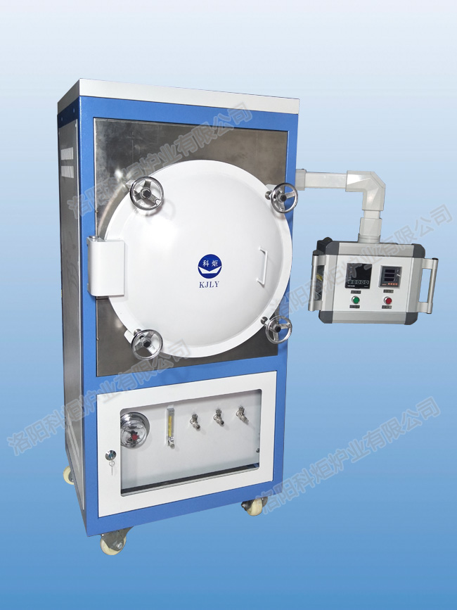 10、爐門為側開方式,從左往右爐門及爐頂由緊固螺絲固定,爐門及爐備循環水冷系統,爐體上有進氣口、出氣口、抽真空口。