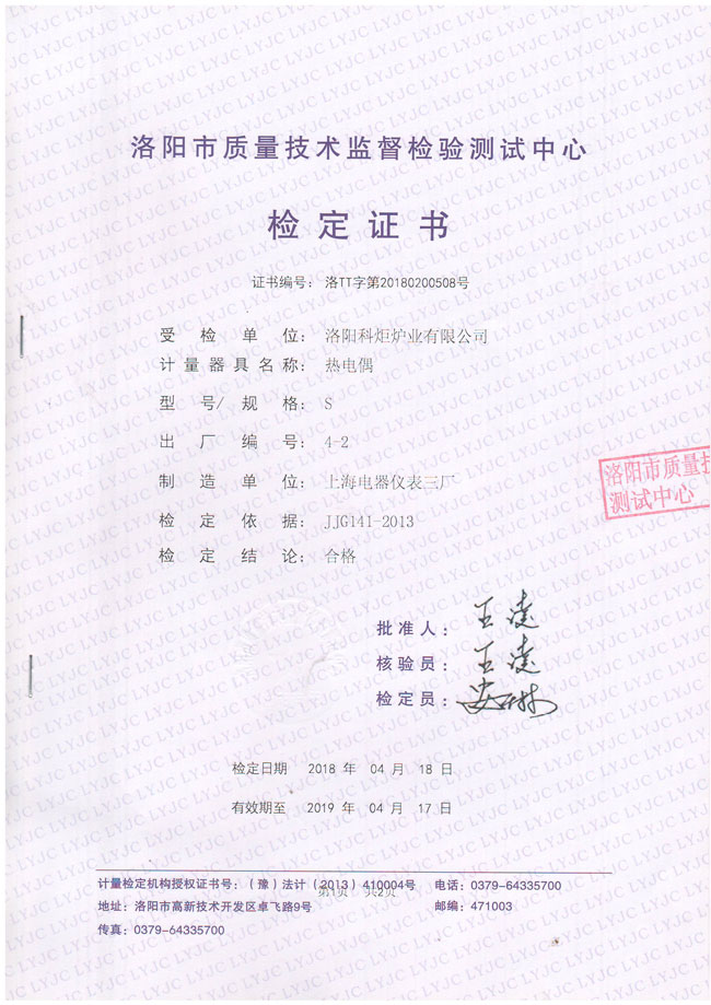 熱電偶檢定證書 發(fā)布時(shí)間:2019-05-30作者:點(diǎn)擊:8965字號(hào):大中小 分享到:0 用手機(jī)看 拍下二維碼,信息隨身看 試試用微信掃一掃,在你手機(jī)上繼續(xù)觀看此頁(yè)面。 上一篇:氣象滲鋁爐檢測(cè)報(bào)告 下一篇:沒有了