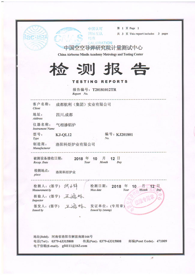 氣象滲鋁爐檢測報告 發布時間:2019-05-30作者:點擊:7885字號:大中小 分享到:0 用手機看 拍下二維碼,信息隨身看 試試用微信掃一掃,在你手機上繼續觀看此頁面。 上一篇:耐震壓力真空表檢定證書 下一篇:熱電偶檢定證書