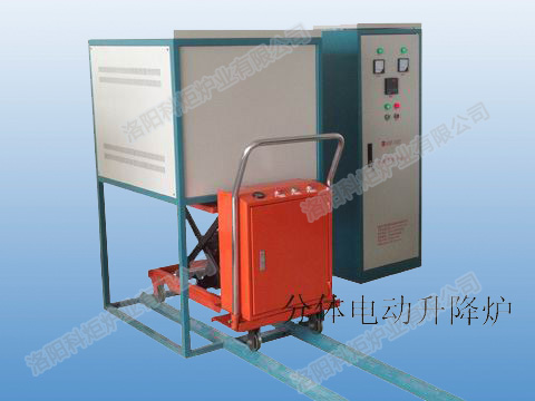 高溫升降爐結構,裝料臺有軌道移出到指定位置進行裝料卸料工件堆放在工作臺上,上下電動傳動,爐門上下按鈕開關電動控制;爐膛四面加熱,爐溫均勻性非常好,的爐膛材料和穩定的溫度控制系統。爐襯采用輕質氧化鋁纖維板拼裝而成的爐體,爐底采用輕質保溫磚和重質可承重耐火磚砌筑,爐門車采用機械傳動